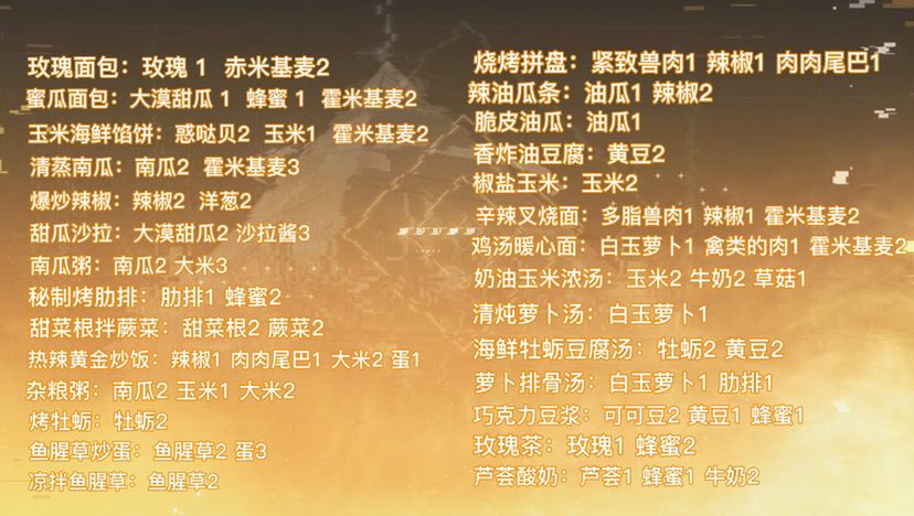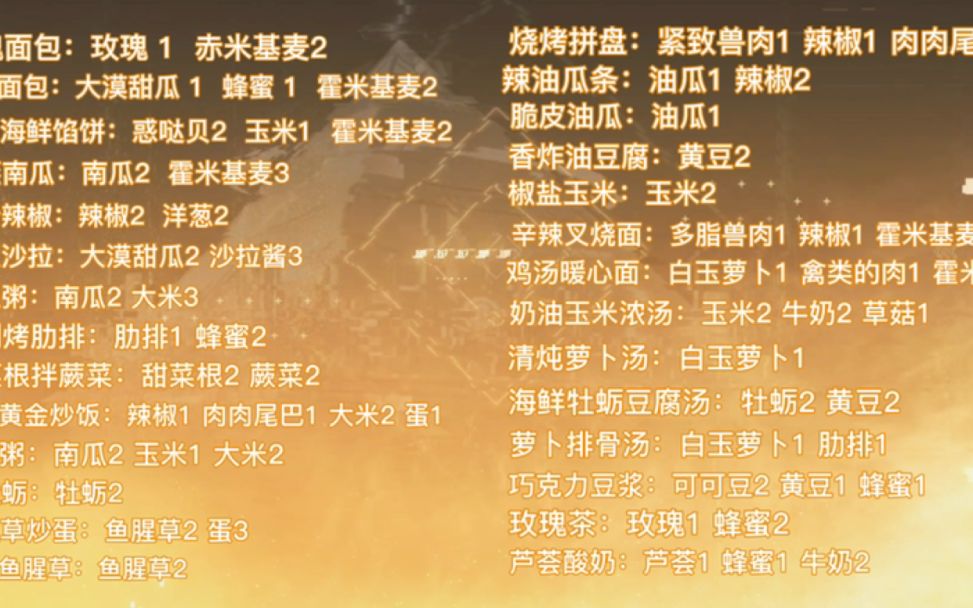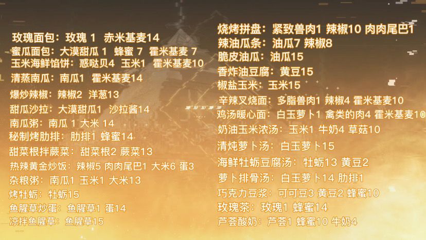 1.0亚夏大陆→ 幻塔食谱大全 配方和比例