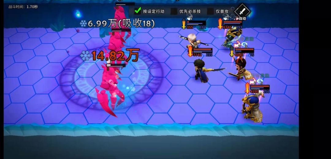 在打怪的时候开自动会有3个选项,顺序施放、优先大招、只普通攻击。前期的时候只普通攻击就够用了,但到40多级普通攻击就打不过BOSS了,甚至小怪都打不过。这个时候要调整技能释放顺序。