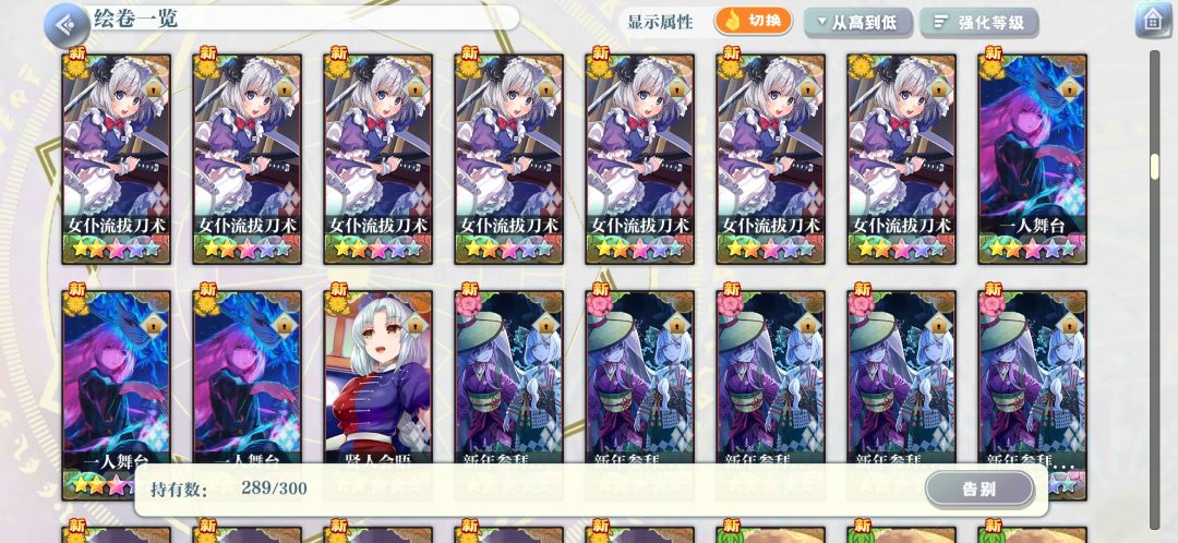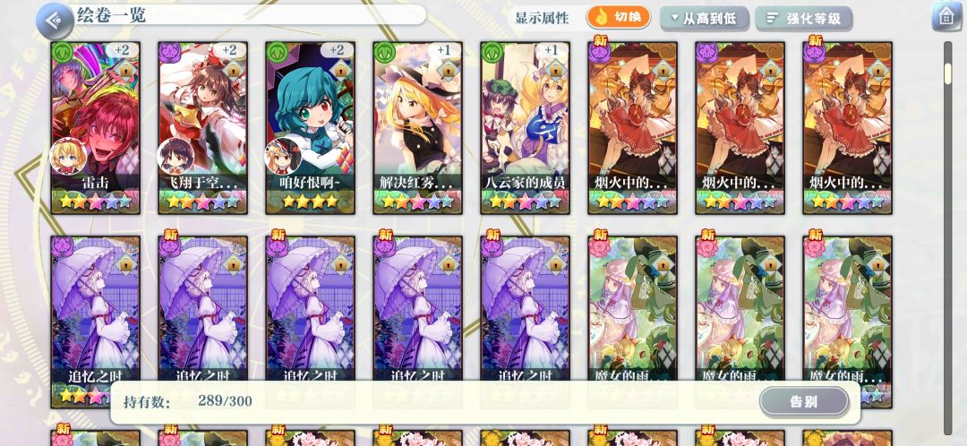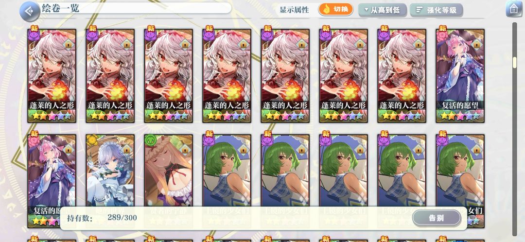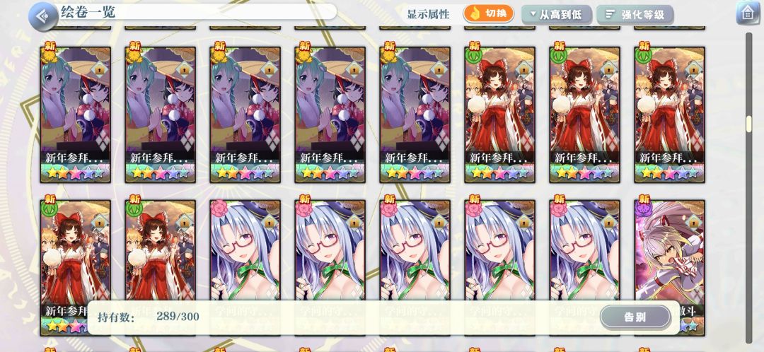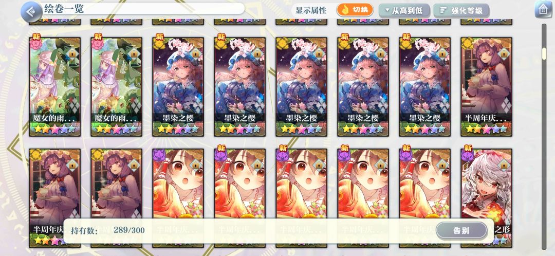 三星绘卷基本上都分解了,四星也只留了强度榜和b站角色专栏上会出现的和一些我自己非常喜欢的,五星都留着,这个可能要大佬们看看我发的图,实在麻烦!!