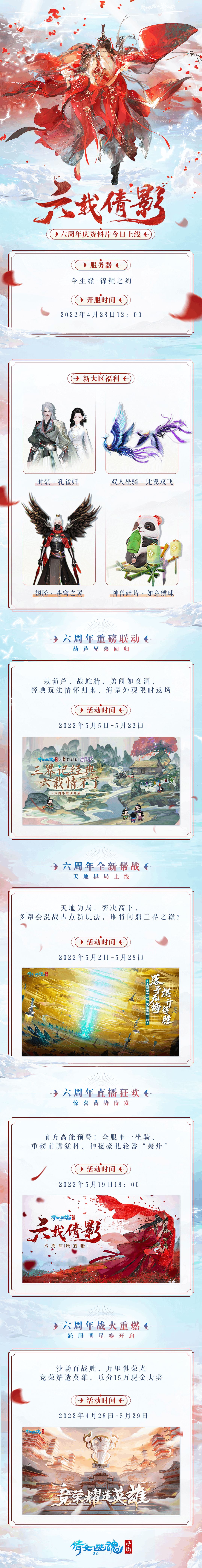 六载倩影,不负相遇——《倩女幽魂》手游六周年新大区【今生缘】首服【锦鲤之约】4月28日现已火爆开服,全新周年庆活动将于2022年5月5日隆重上线。