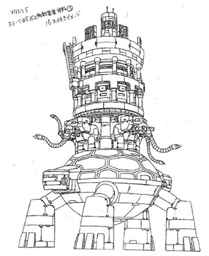 在官方的原画手稿里,猛犸塔实际上有更加完整的形象,传言里的石龟BOSS作为底部可移动的核心,支撑起了这么一个防御塔,而塔的顶端,原本计划便是站着面具男和他的信徒们,等待主角的挑战。