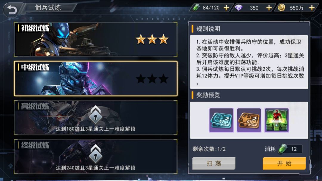 佣兵试炼:获得佣兵培养材料以及佣兵碎片的重要途径;