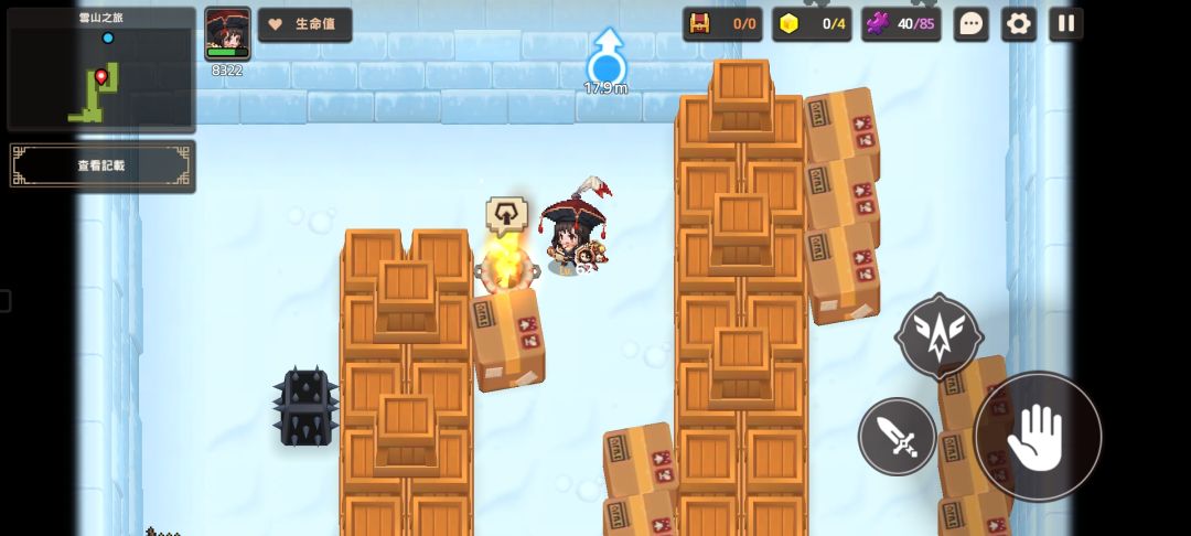 然后搬着炸弹往左,用炸弹将睡觉的雪怪炸醒即可完成信息记录
