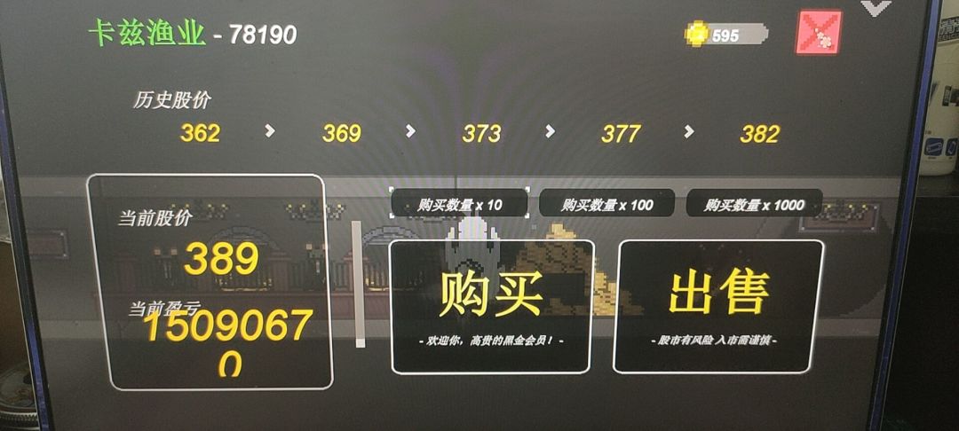 点开炒股界面(已自动存档),等待下一次数值变动(例500),若涨价则退出炒股界面重进(例520),若跌价则退出至开始界面重进(例480)
