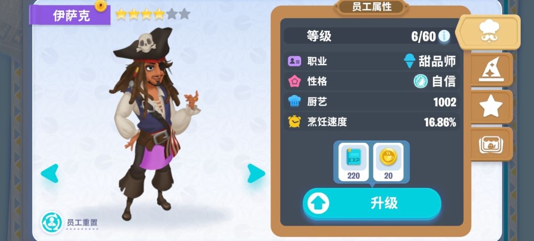 等级 厨艺 增加