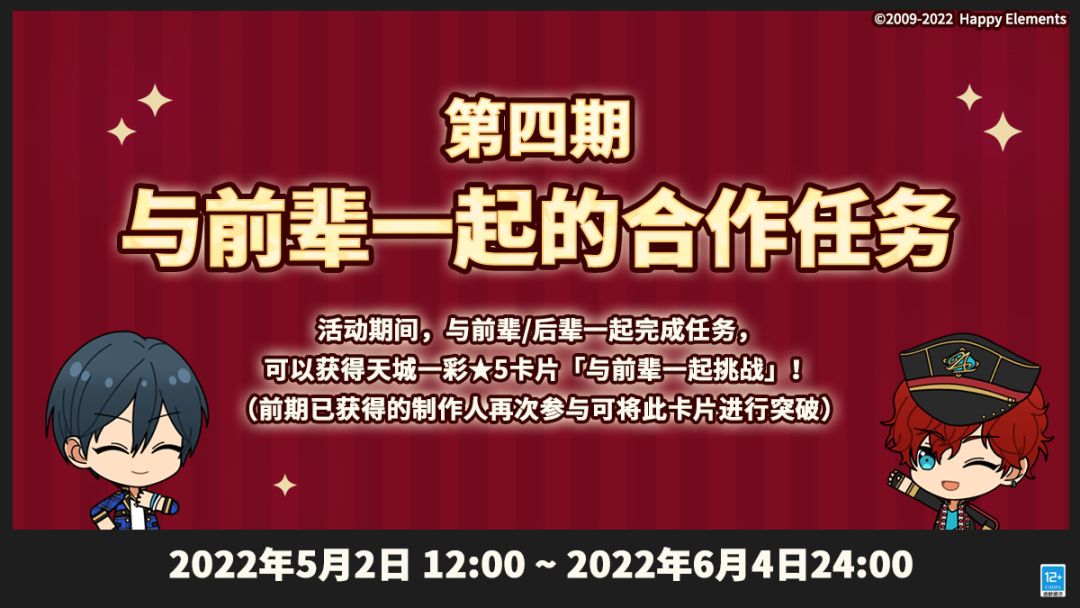 活动期间,与前辈/后辈一起完成任务,可以获得天城一彩★5卡片「与前辈一起挑战」!