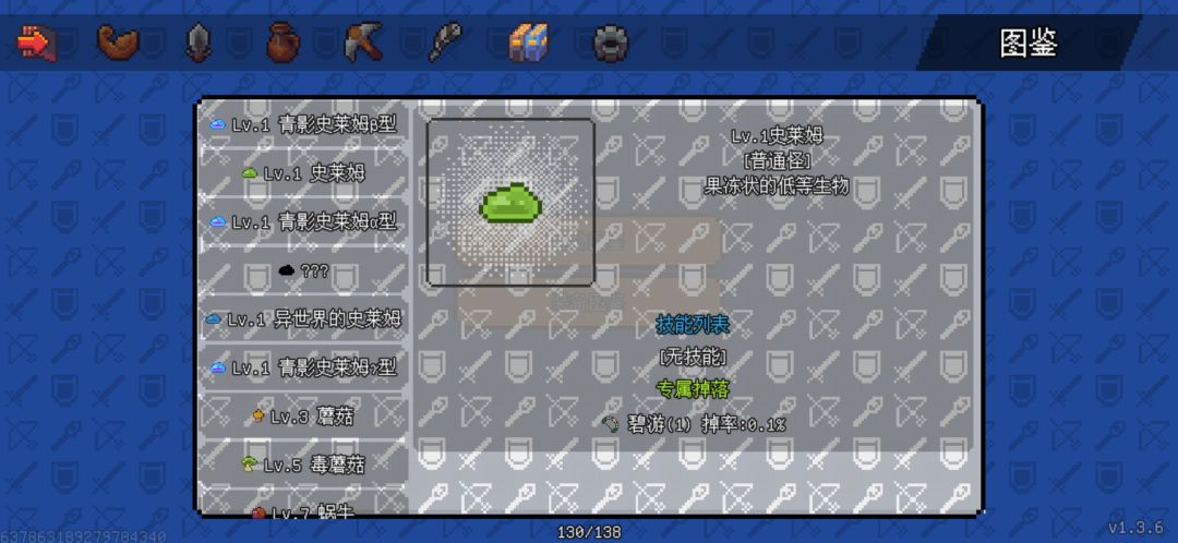 普通史莱姆掉落 0.1的概率比较稀有