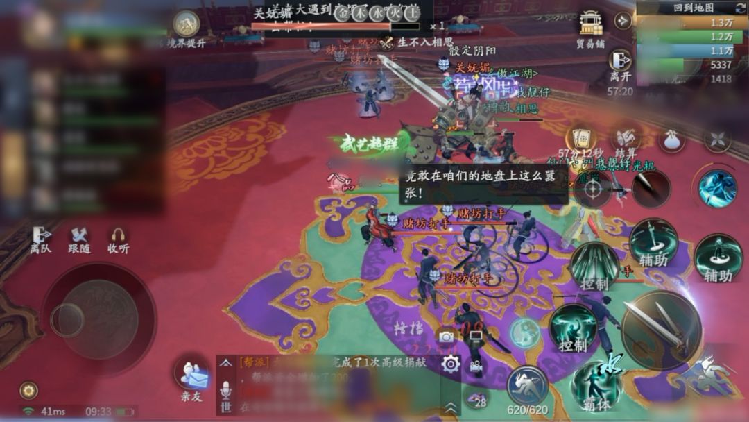 第二个BOSS是关妩媚,也是我们夏栖飞的表妹,造型设计得还是非常讨喜的,骑在昆仑奴的身上。表妹主要有2个技能,分别是【喝六】和【虎头】。【喝六】技能就是摇人,召唤大批万金舫的打手前来助阵,有群攻技能的小伙伴尽量把打手聚集到一起群掉,不然随着BOSS逐渐掉血,场上的人越摇越多,打起来会比较麻烦。