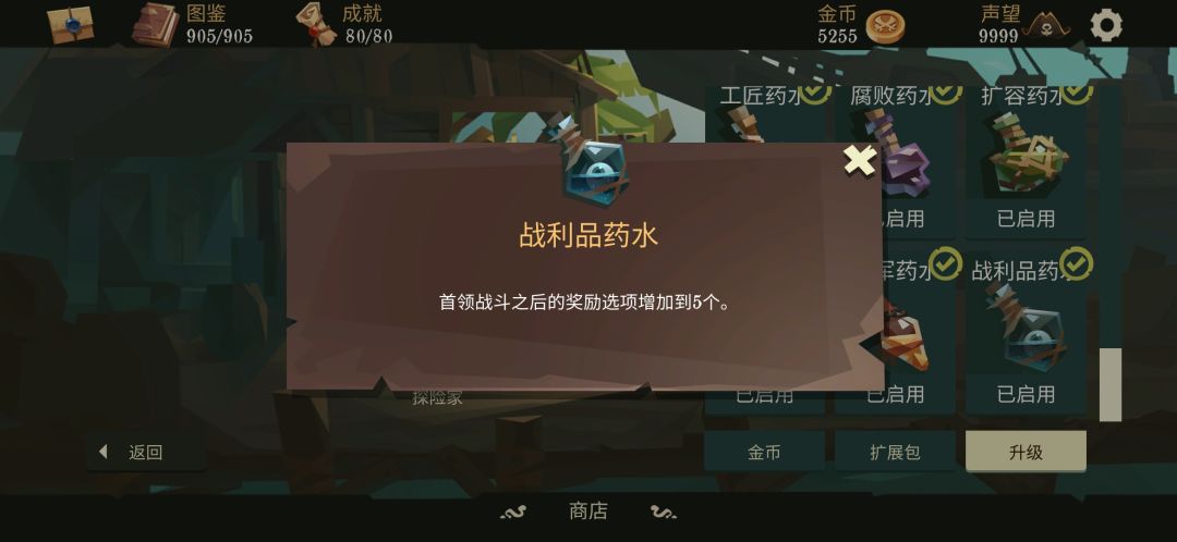 里面比较推荐优先购买的除了前面几个便宜货还有一个价值3500的战利品药水。