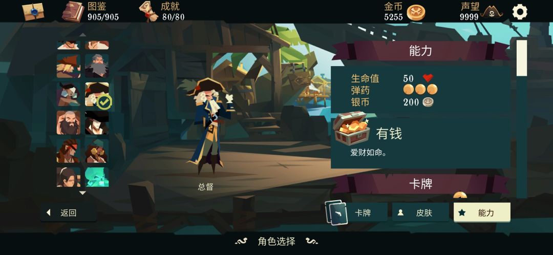 但他除了自带的卷轴勉强和前两个角色最比较外还有更擅长的摸卡能力。纵观全角色里(排除大副)没有一个角色能有战利品上限+1这样牛逼的能力。这使你更容易摸到想要的卡,在这方面完全不训色与其他角色。
