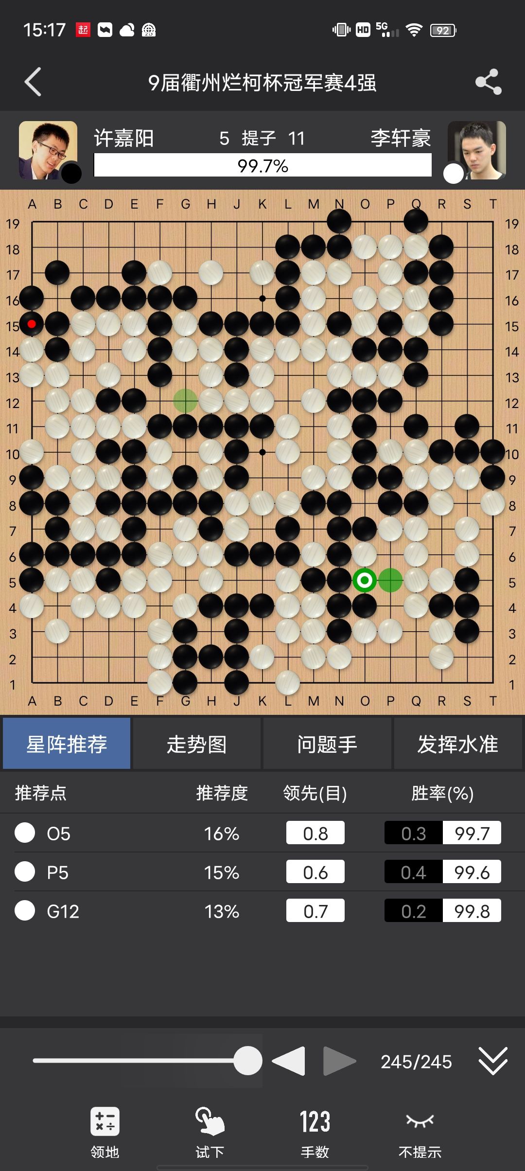 当中盘战斗结束,大场被抢占完,双方只能从小处着手,这时候就来到官子阶段,双方落子叫收官。