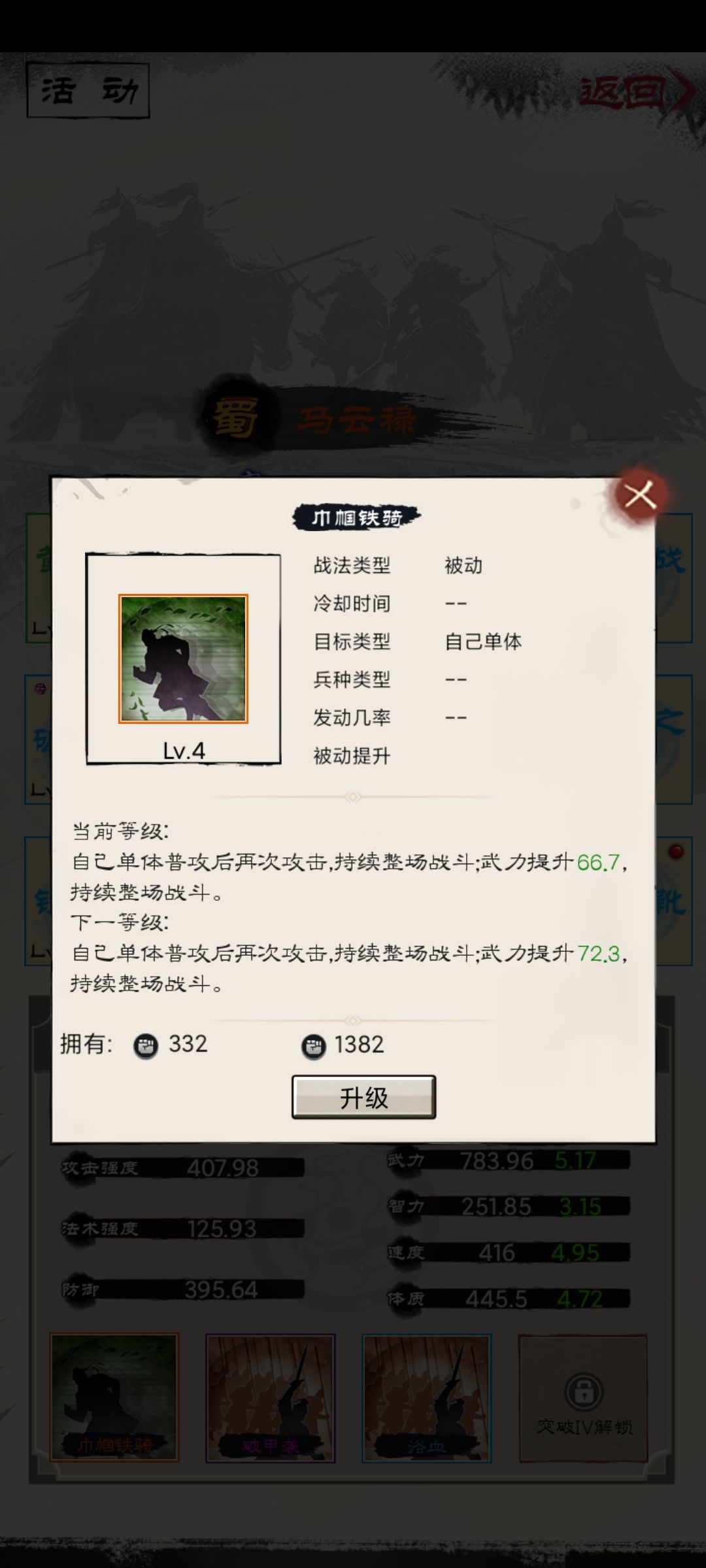 马云禄加点主要点武力。