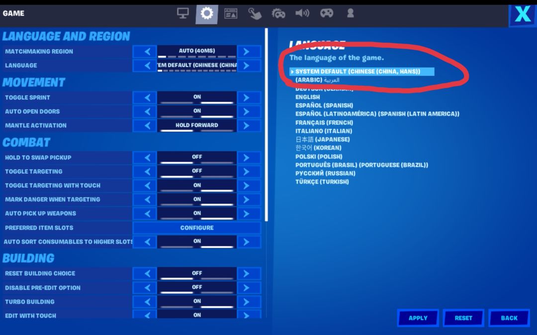 选择第一个SYSTEM DEFAULT ( CHINESE ( CHINA , HANS ))中文