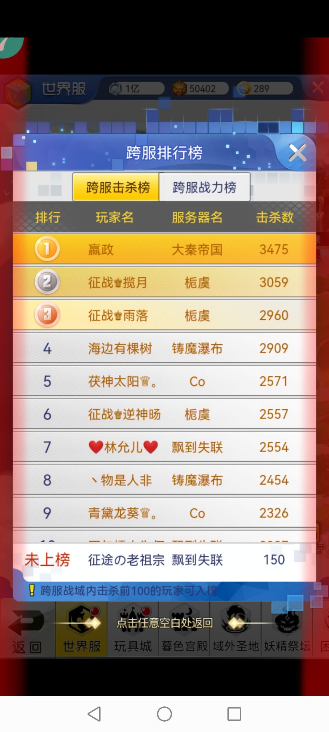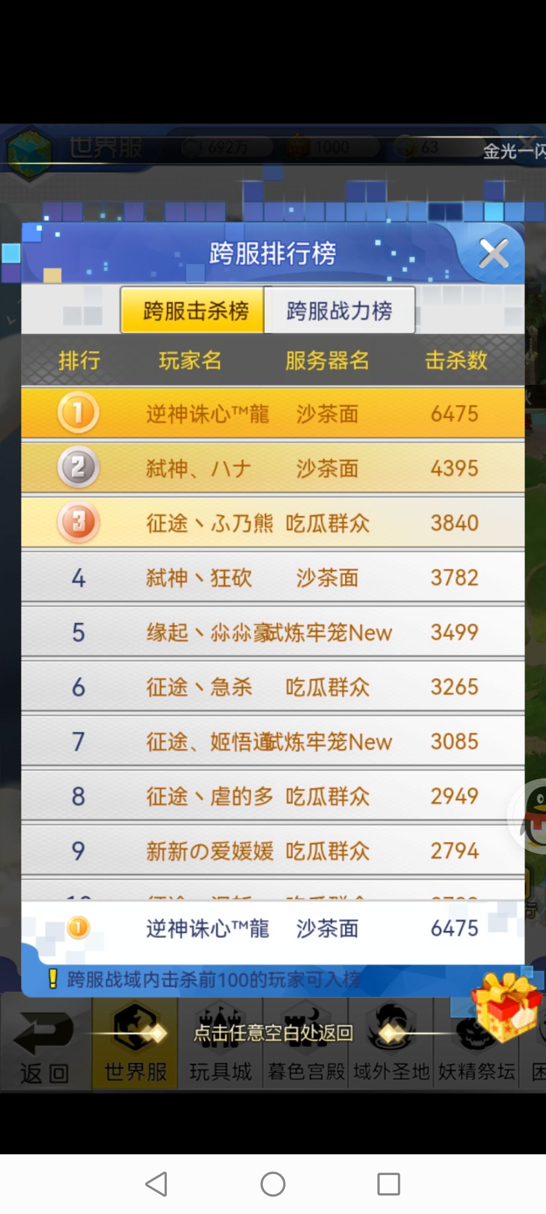 【秦,其实也就这样了吧,和杂鱼征一个吊`样!跨服击`杀榜的榜首,开服240多天能有3475的击杀数,呵呵,可不比劳资差啊!你无非就是游戏的die,保护弱小,保护成了恶`人帮帮主是吧?】