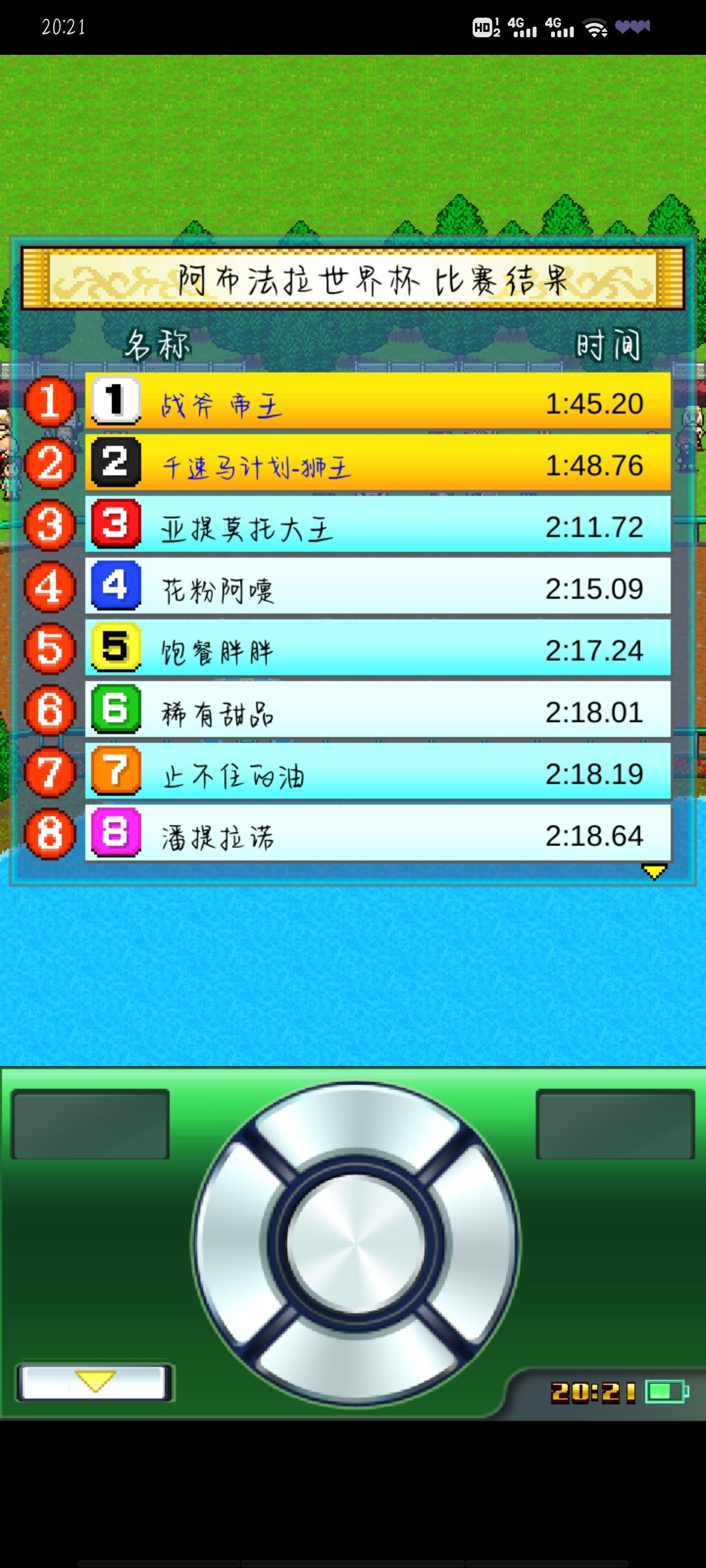 如题,测试了一下场地适应力的效果,选择赛道4800m的沙土(就是那个阿什么赛)。