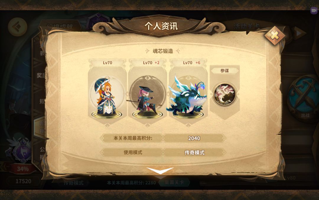 852双黑罗杰,刷一个白4,黑2,然后一直金4,尽量多凑强化魂芯,6T