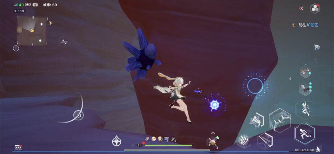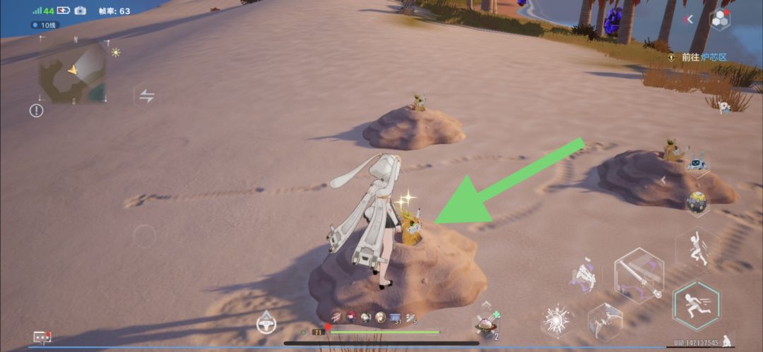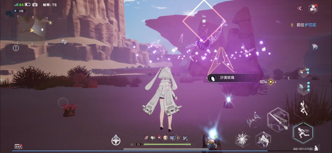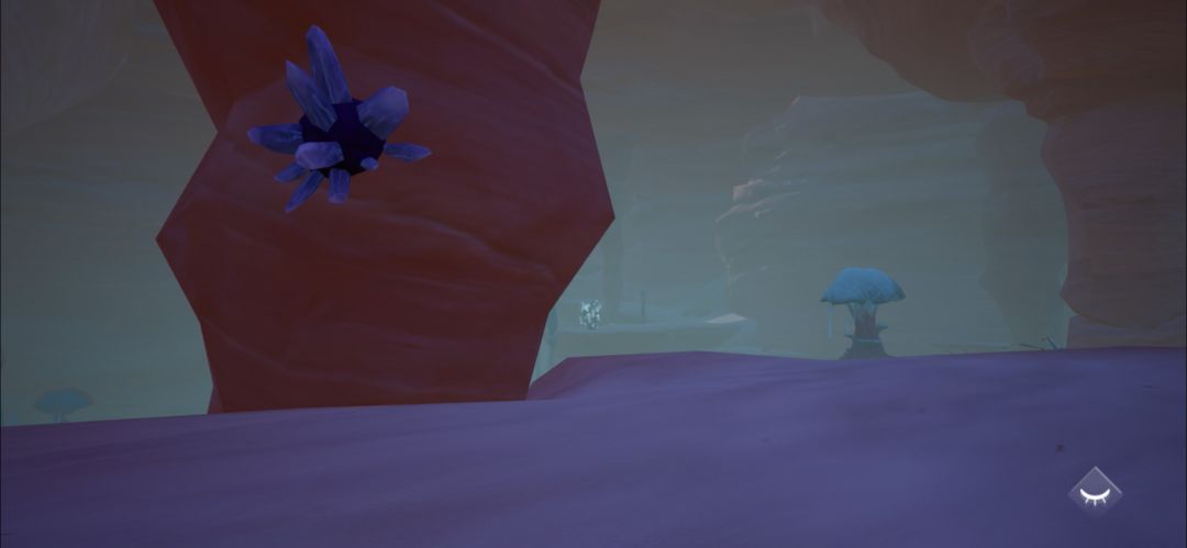 找到附近的紫色矿石,靠近矿石获得能量球之后再靠近蘑菇,来回两次即可点亮蘑菇。