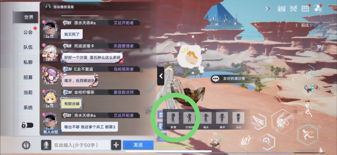 打开聊天室,使用鼓掌或者打招呼即可,友好的潜沙兔