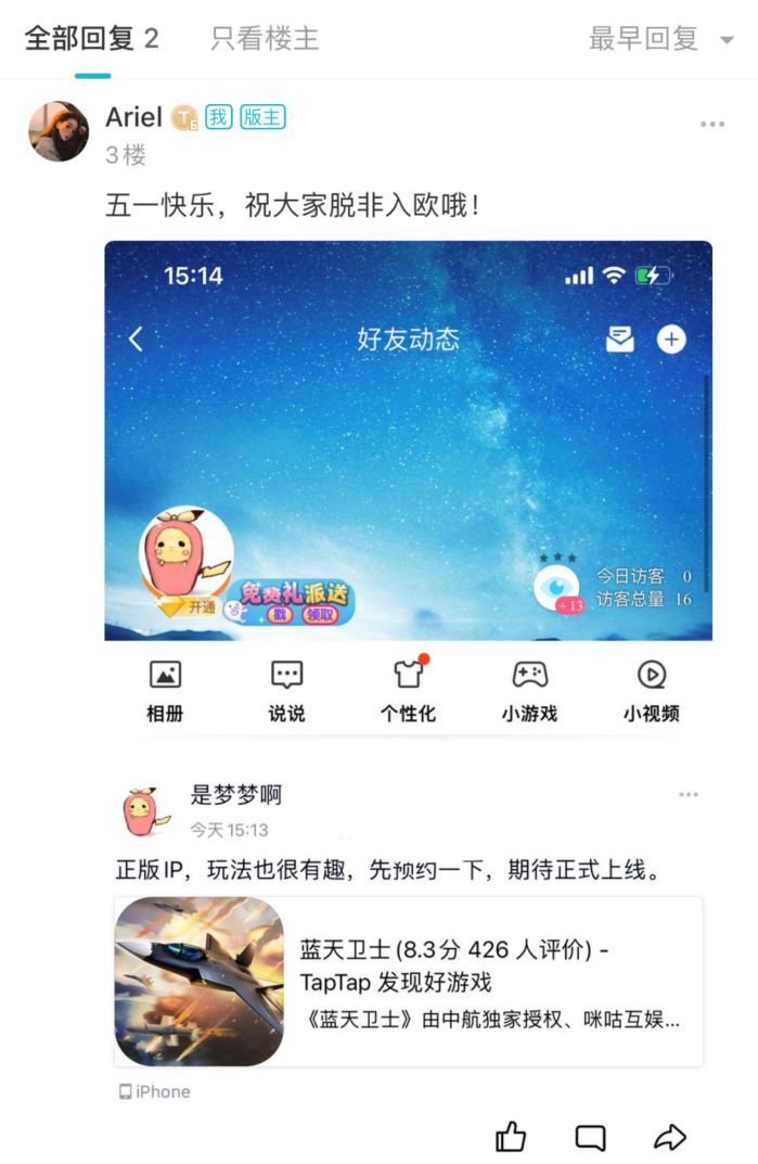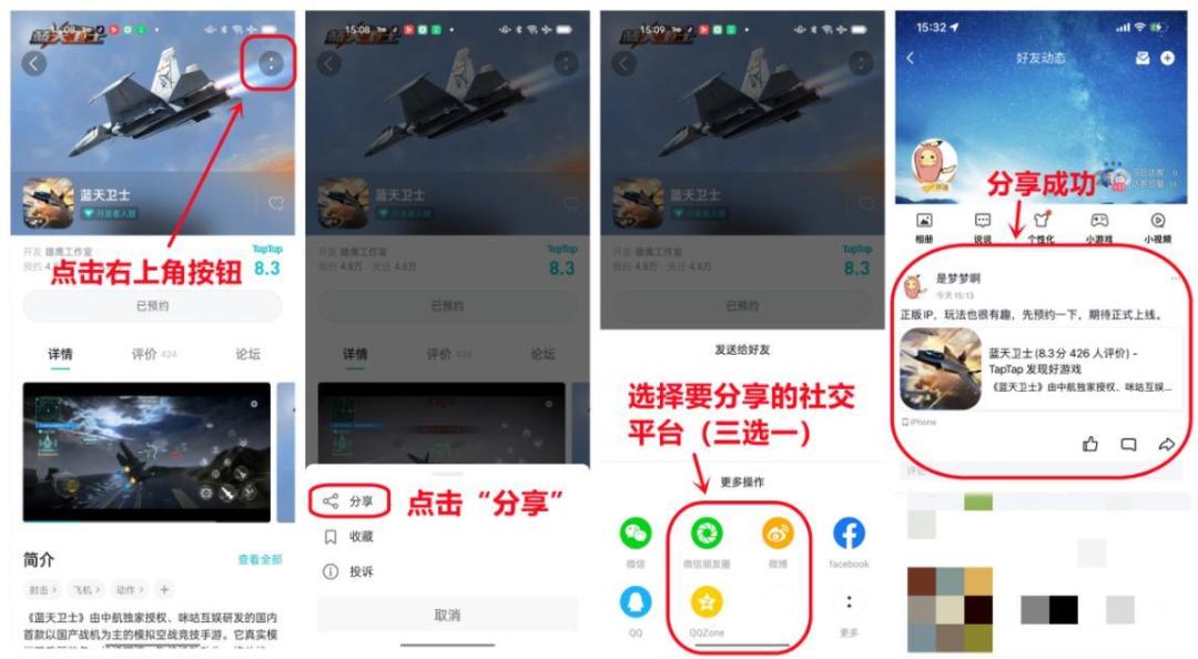在TapTap《蓝天卫士》主页预约+关注我们,并公开转发《蓝天卫士》主页到QQ空间、微信朋友圈或微博(传播平台三选一),将分享成功的截图发在本帖评论区,即为参与成功。