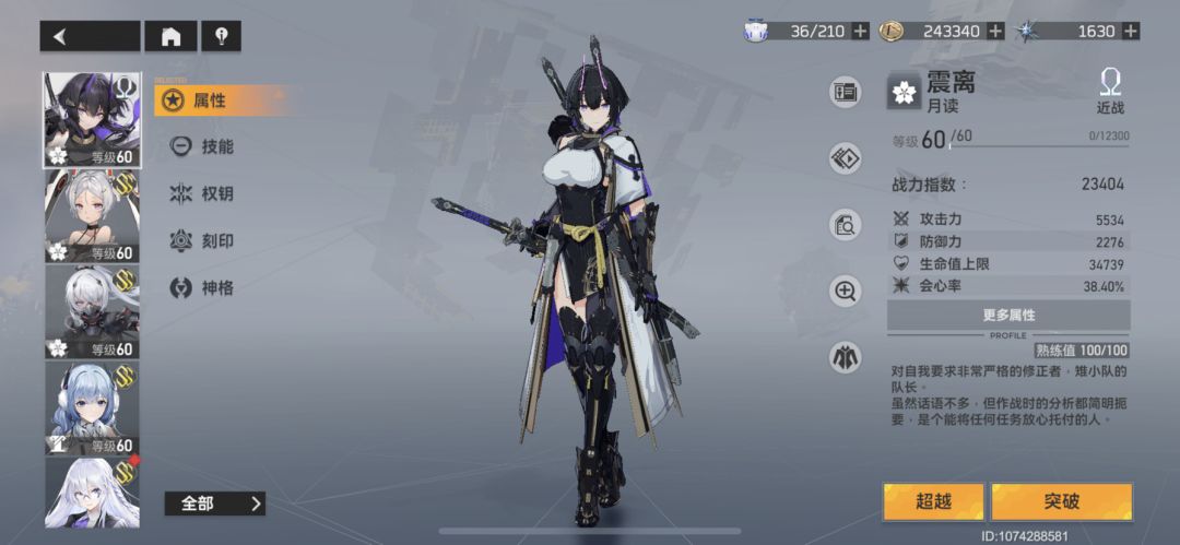 * 震离,初始S级雷属性角色,属真樱阵营。作为稚小队的队长,无论何时都可以将任务放心托付于她。这个角色不论单体、群体还是打爆发,都很出色,属于一个十分全能的角色(目前版本)硬要说缺点的话就是:对玩家的操作会有很高的要求,所以建议摸鱼的宝贝们可以把震离挂AI哦!还有就是震离的割草能力相对不够出色,容易断印记,另外就是身为怒气角色这一特点了,只能说怒气是如此不便之物,震离改动怒气是无望的,因为改了怒气变成神能 那么 这个角色将是所有版本最顶尖的存在。 *震离的操作和伤害成正比的哦,你的操作如何 就决定了你造成的伤害是如何!