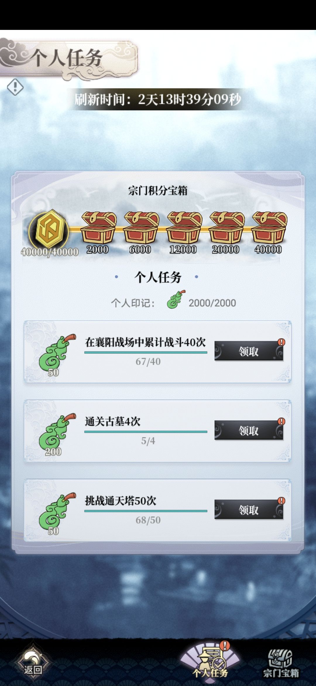 1.宗门任务:小红点消不掉,我可以接受上限,但是麻烦你别出小红点搞心态行不行。