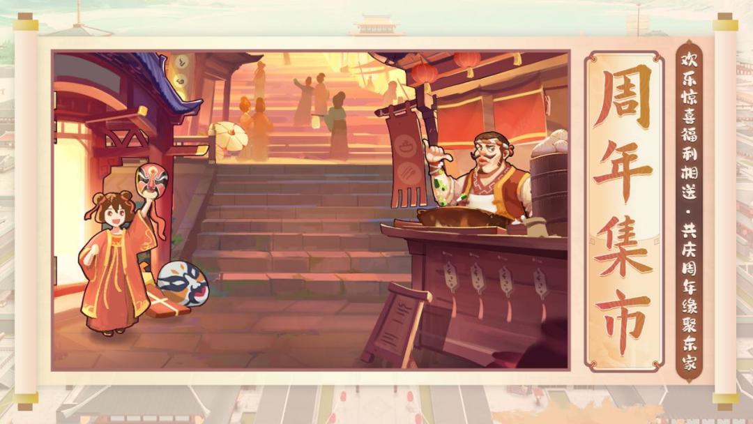 在周年集市入口中,还有百绘脸谱、签到福利、幸运福袋等惊喜福利等待各位前往,与东家们一起欢聚此时!