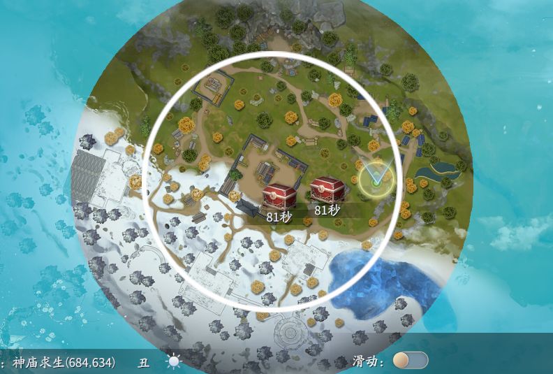 点击右上角的小地图可以查看完整地图,每经过一段时间,会刷新新的安全区,玩家需要前往安全区,如果处于毒区之中,会持续受到伤害。