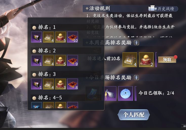 每周可以领取“本周最高排名奖”,每天还可以领取4次参与奖励。