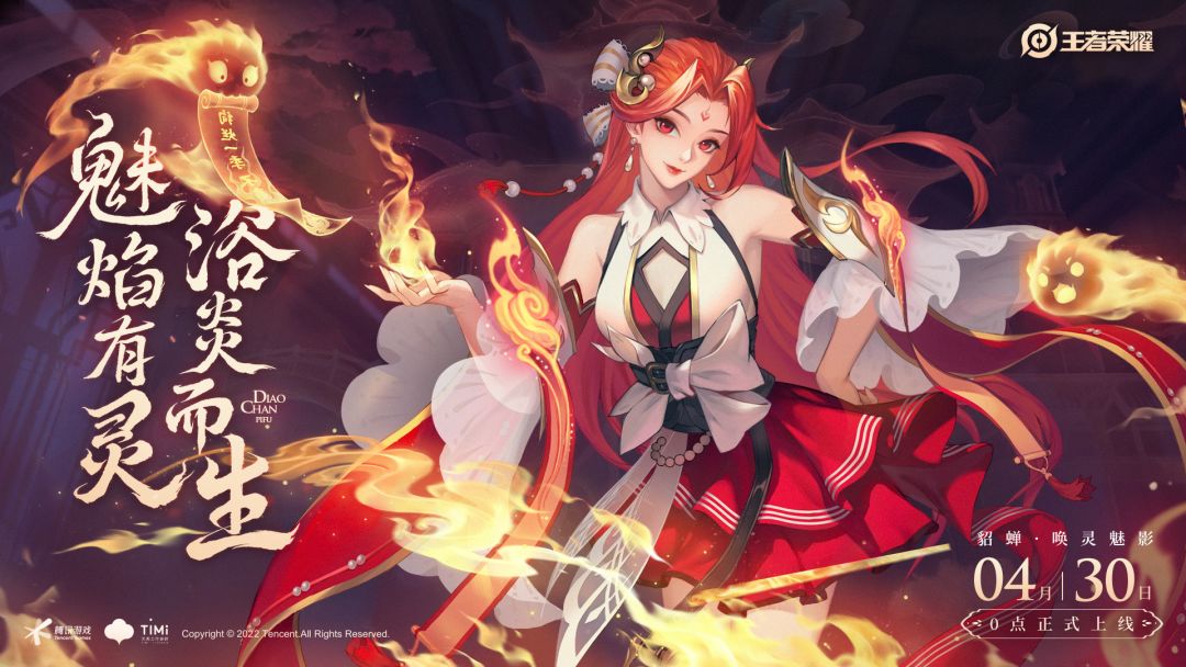 【貂蝉-唤灵魅影】史诗品质皮肤,皮肤将于2022年4月30日0点上线。2022年4月30日0:00-2022年5月7日0:00,首周价格为710点券;2022年5月7日0:00后,价格为888点券。