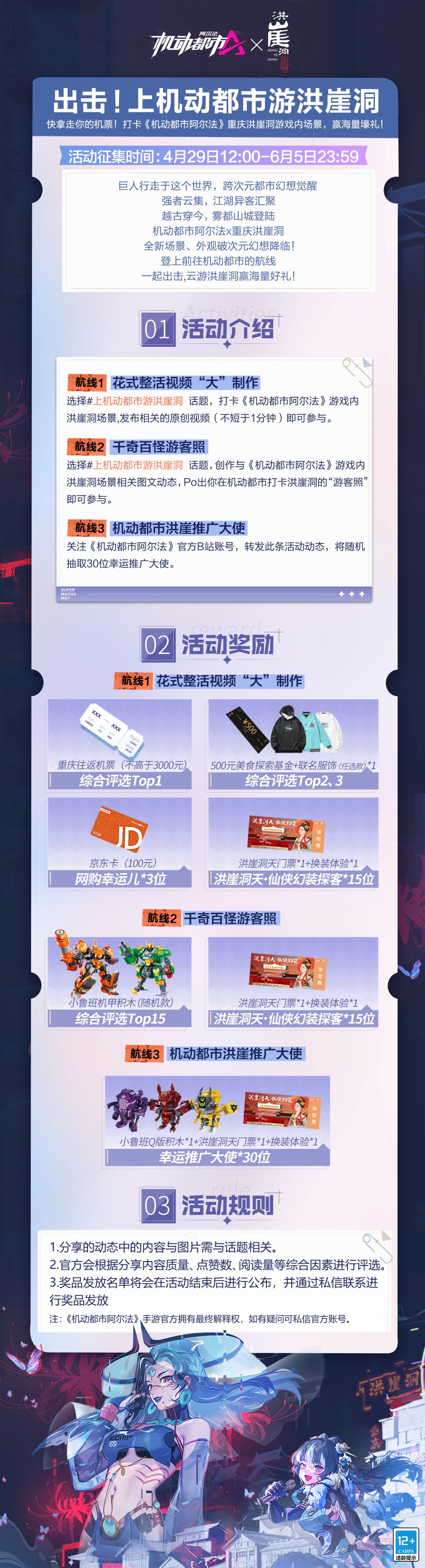 参与详情请戳长图了解~快来一起登上前往机动都市的航线,云游洪崖赢大礼吧!