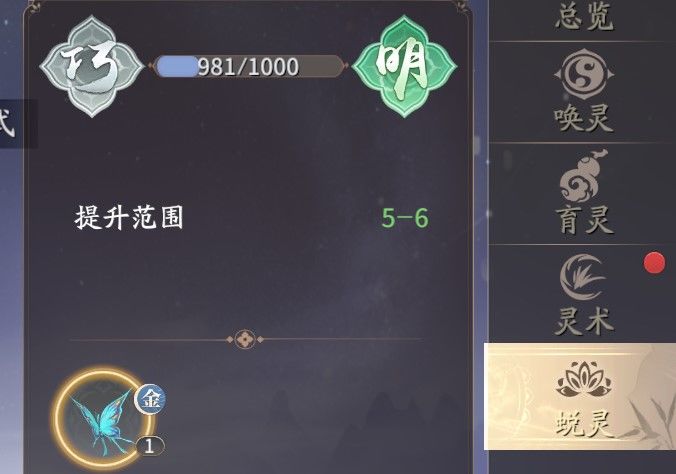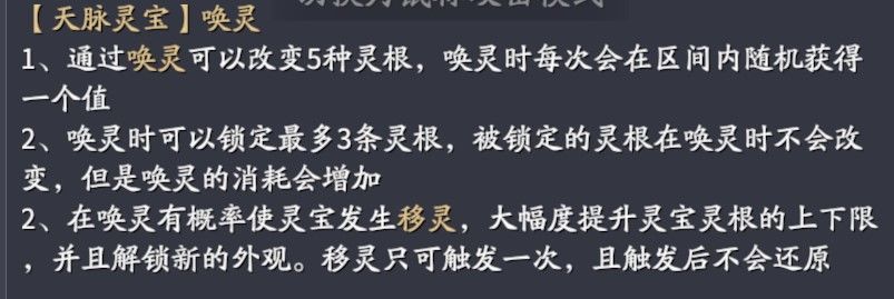 ③唤灵最大的好处是概率能让“知灵”变成“移灵”并且不会回退,所以一开始如果没抽到“移灵”的,也可能在这里能洗出来,让资质上限达到最高。