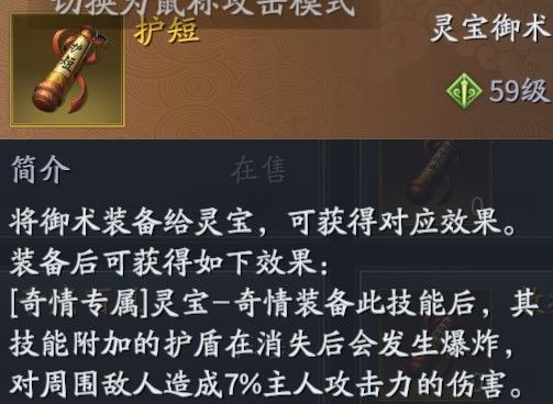 ,专属橙色技能(7秒内2%/s灵宝攻击伤害+减85%治疗)