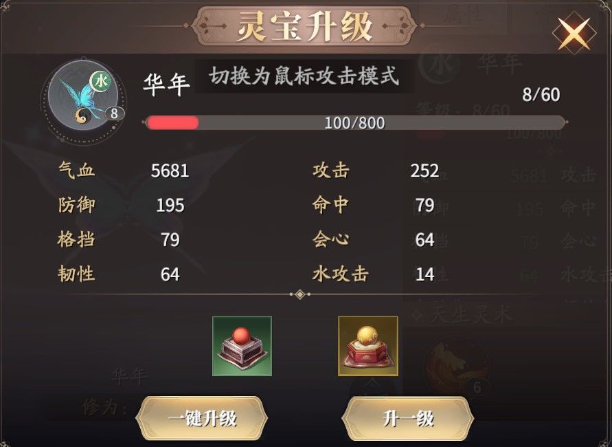 1、灵宝升级,类似伙伴升级