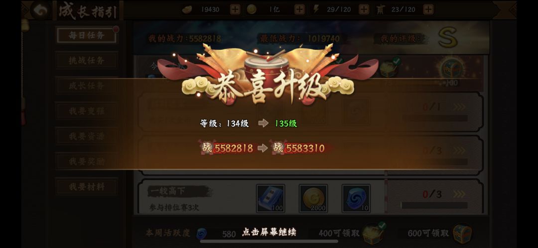 升级了,加油