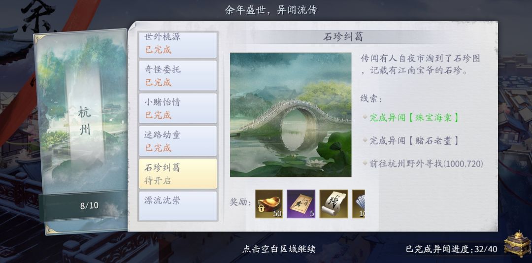 ❻杭州异闻石珍纠葛 先找到位置激活 再完成两个前置异闻后找到坐标点位置接任务完成后续
