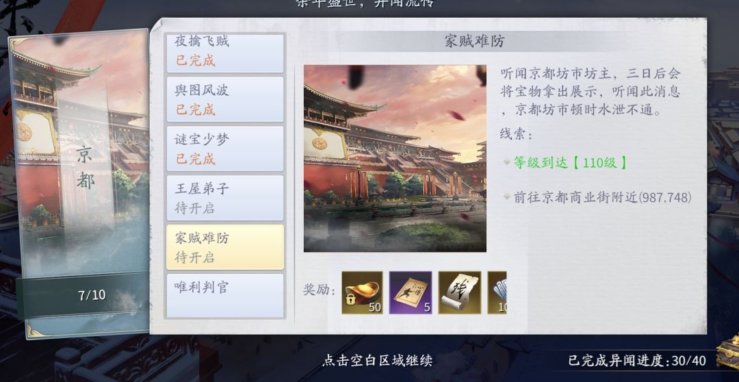 ❹京都异闻家贼难防 先按坐标找到位置激活 再找到第二个位置接任务 可以直接完成任务