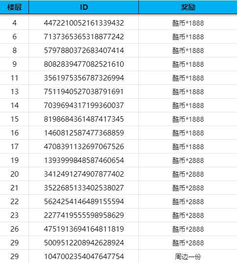 于5月16日选出5月8日-5月15日23:59正确参与活动的5位幸运车友分别送出2888酷币;