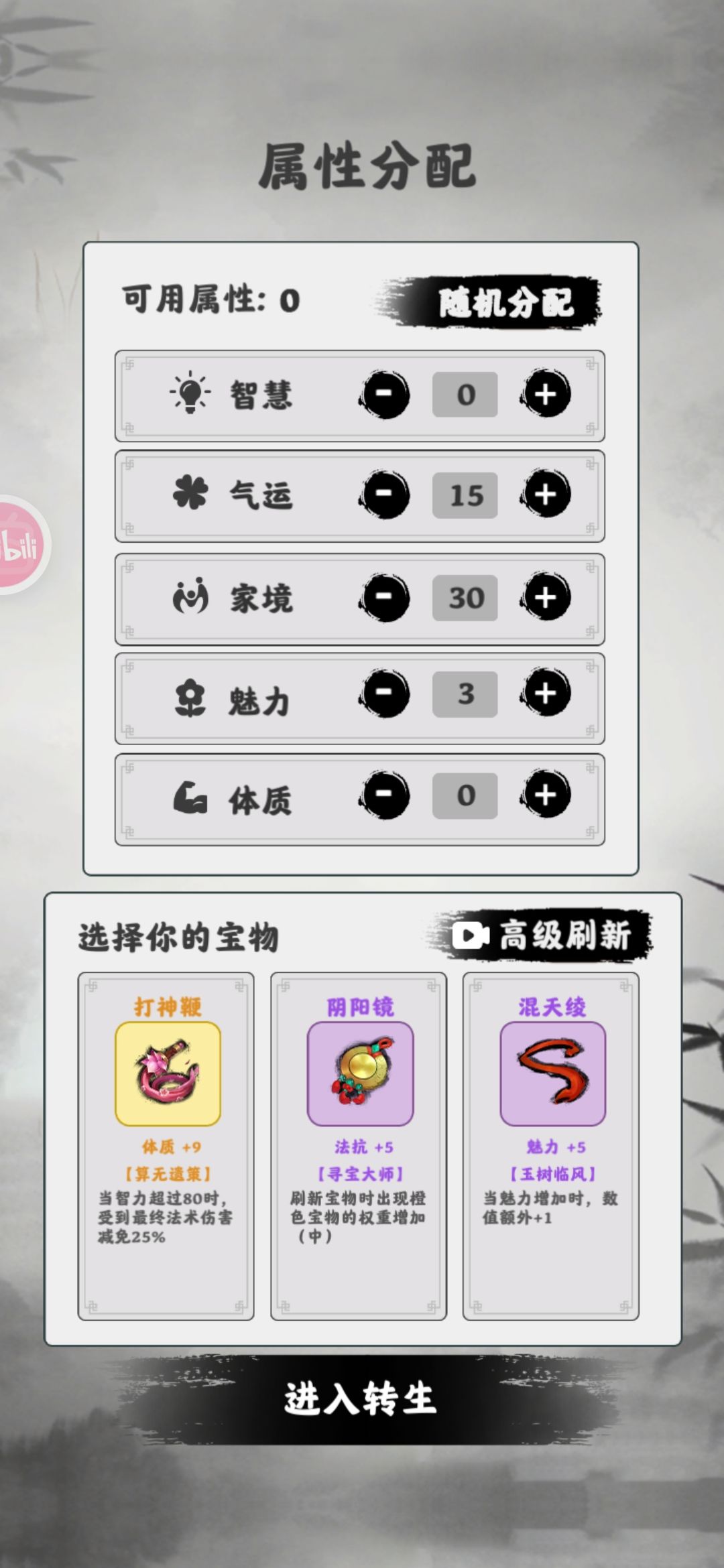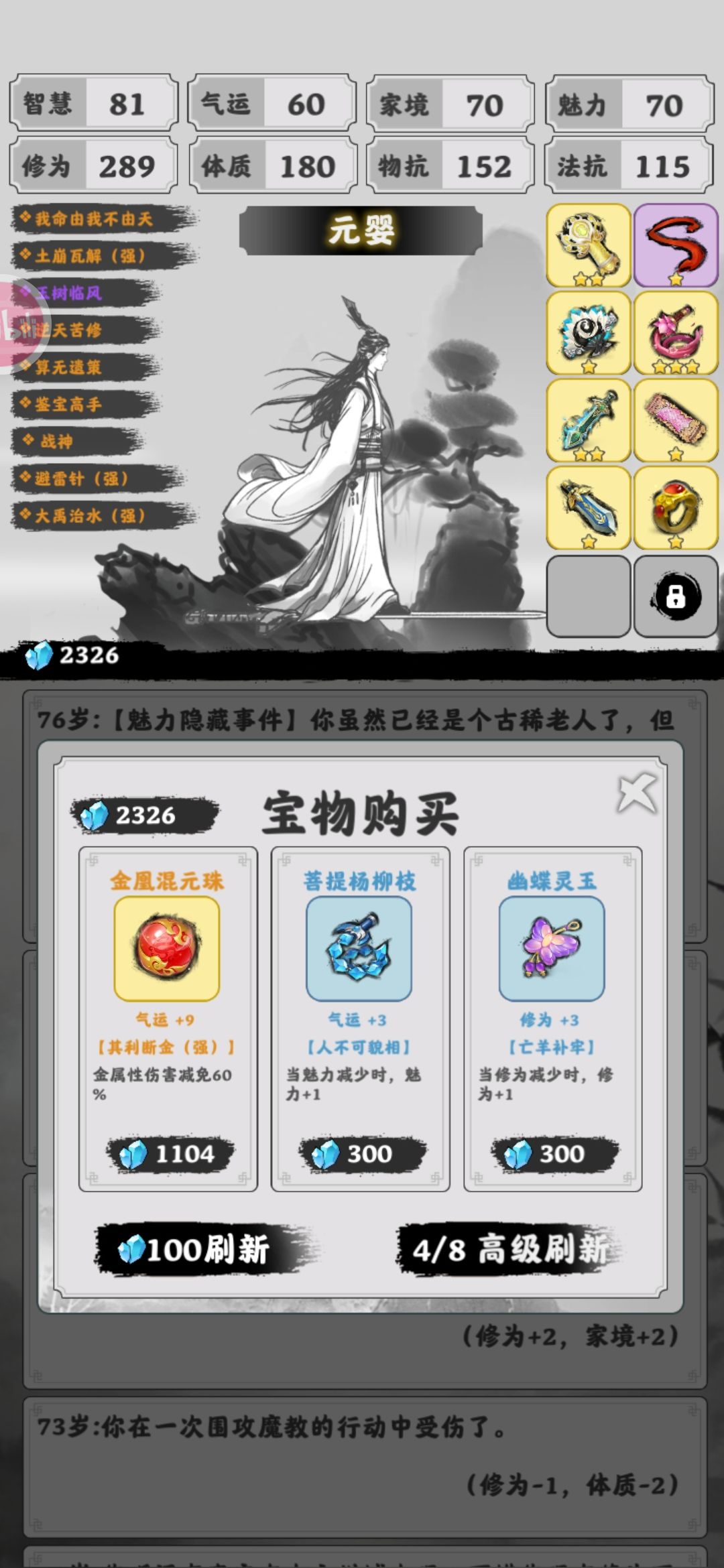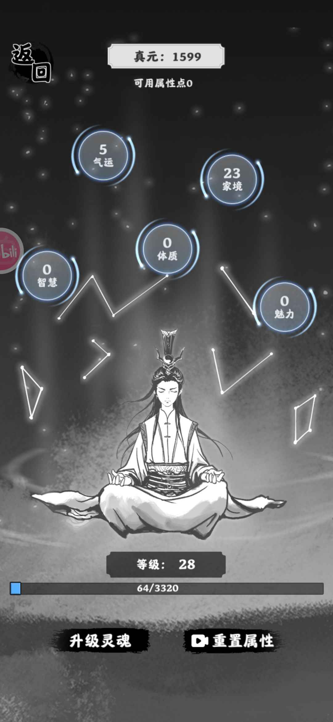 智慧灵根运气还可以,选第一个加智慧宗门,然后第一个买混天绫,保证魅力