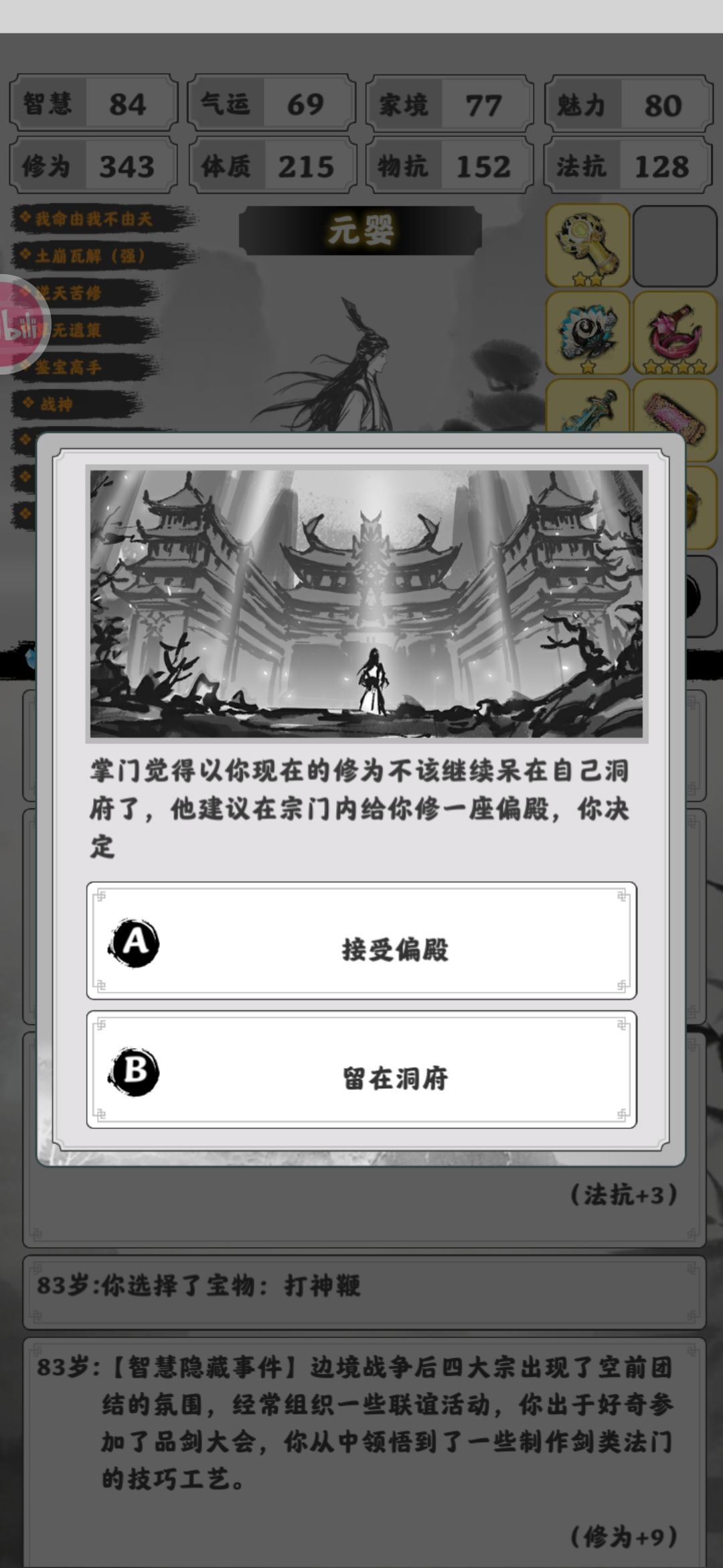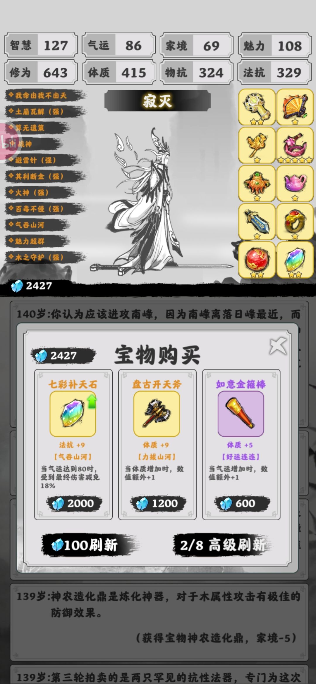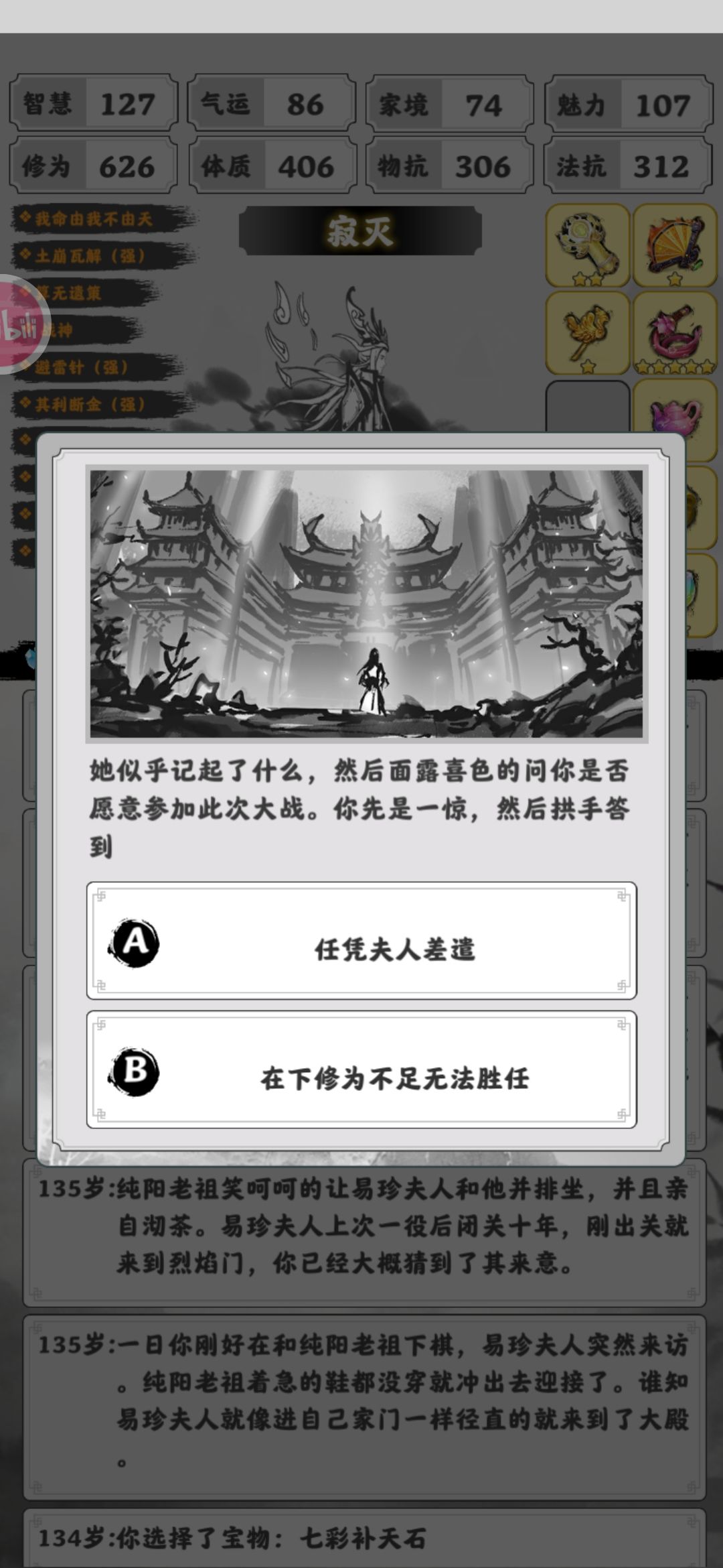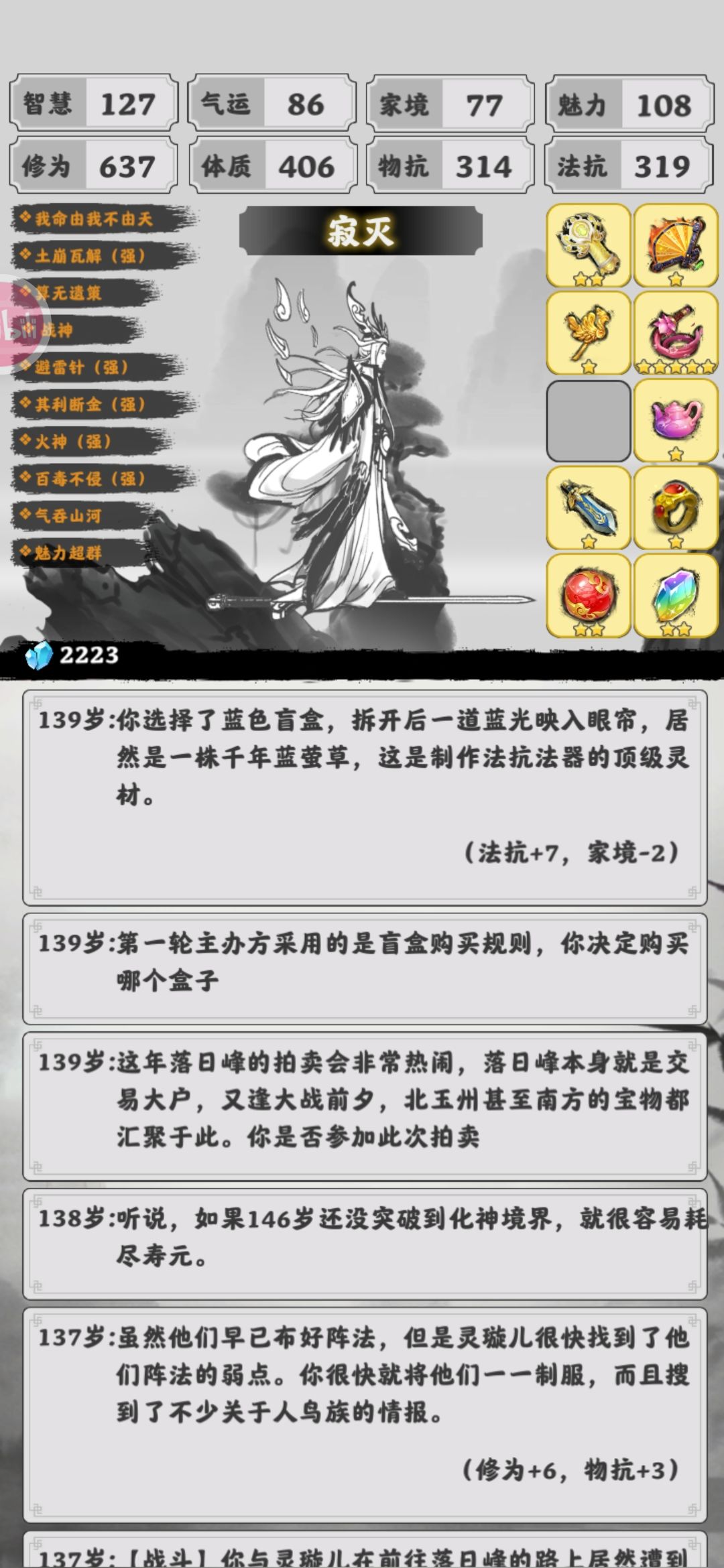 智慧灵根运气还可以,选第一个加智慧宗门,然后第一个买混天绫,保证魅力