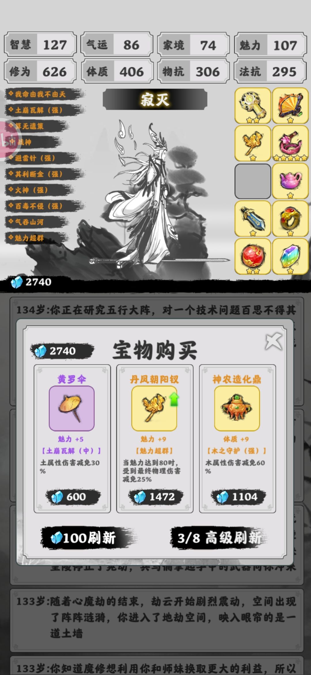 魅力够了,卖掉混天绫,留出一个空位看看能不能出点装备,再补上打神鞭