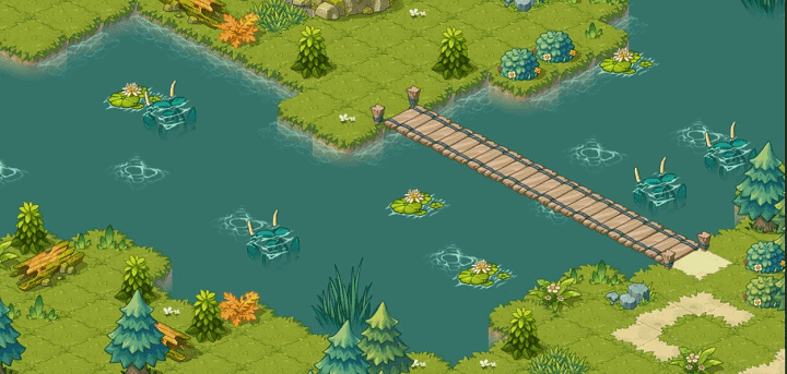 森林地图是游戏前期地图,植被繁茂,河流穿梭其中。微风拂过河面荡起阵阵涟漪。