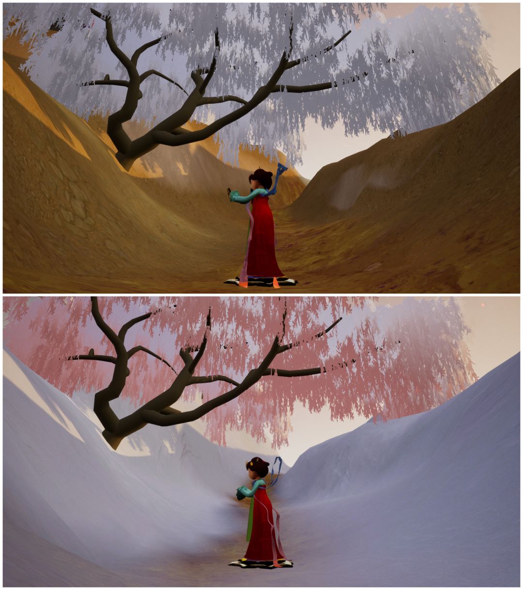 我们也借机将人物的部分动作进行了优化,打算修改前期在公主与小狐狸身上存在的一些动作设计问题。为了使所有动画可以顺畅地衔接,美术同学和程序同学吃光了工作室冰箱里的几十根冰棍。写下这段文字时,他们正为了交流解决一个新的技术问题相互来回走动超过了万步。