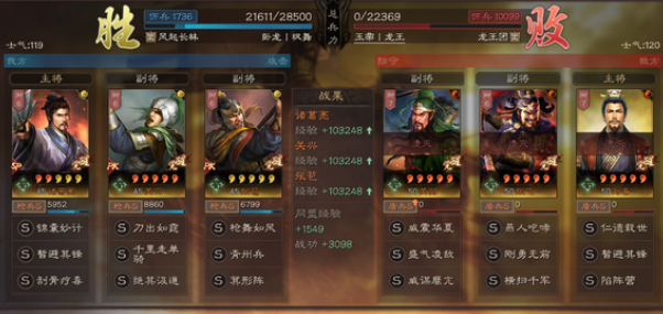 满红大佬的“玩具”,三个武将全满红配置的却是边角料战法为主,最终强度相对有限,战损五千优势战平。