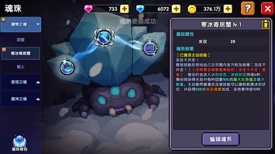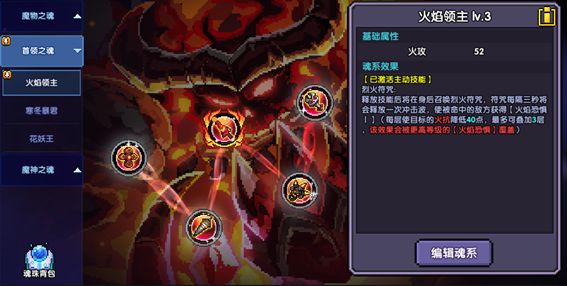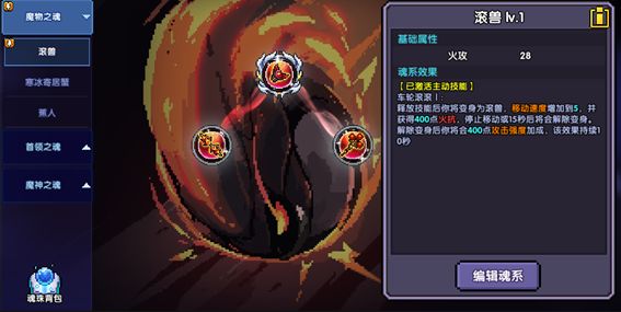 3、将魂珠镶嵌到【魔物之魂】、【首领之魂】、【魔神之魂】(下文简称为魂系)中,并达成特定条件,便可获得对应的强力主动技能。