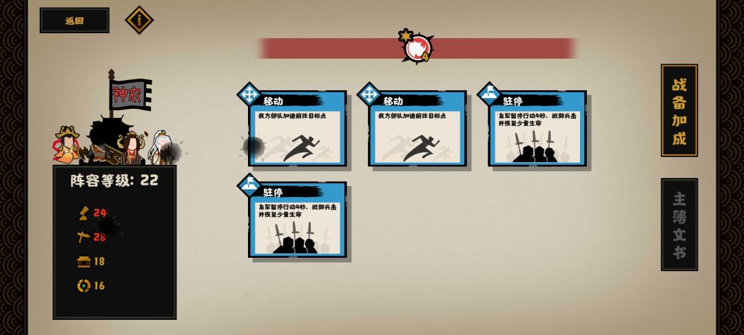 作为一个大家最先接触到的困难剧本,涿鹿之战的主要意义在于让玩家熟悉兵种之间的克制关系、地形对于军队的影响、技能卡的使用、如何放置队伍进行对位、以及兵种的升级与提升这几个方面。