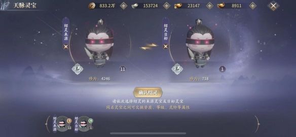 在育灵界面,可以进行灵宝育灵,育灵消耗道具“育灵露”,育灵露可以通过珍宝阁购买,也可以通过参与各种活动获得。通过育灵,可以提升灵宝的属性,使灵宝更加强大。