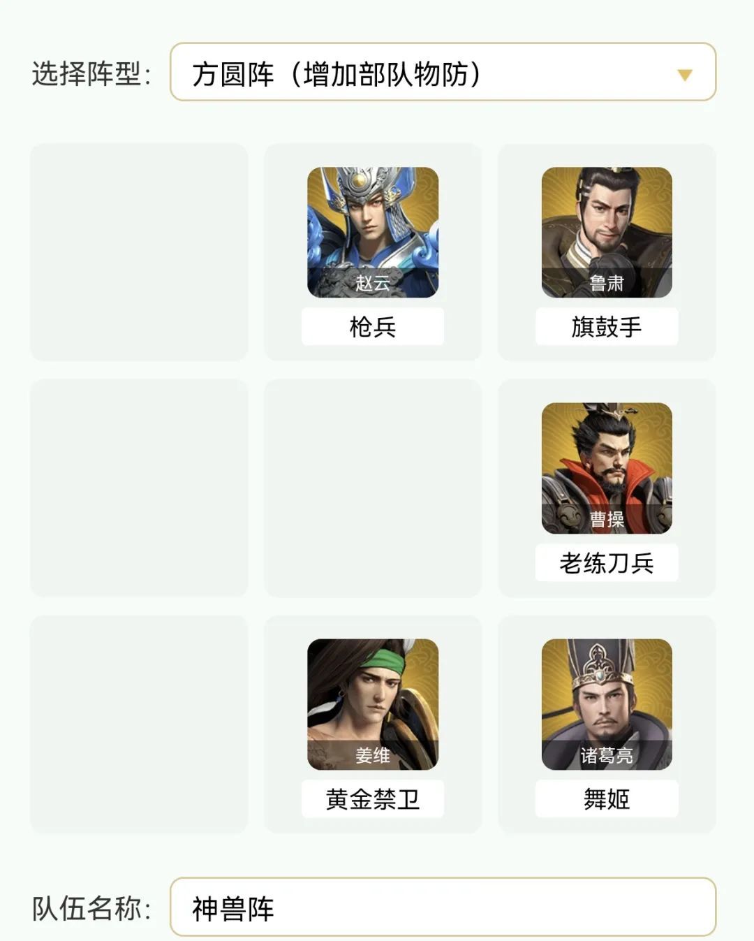 阵容要求:阵型选择包括但不限于方圆阵,利用快航战马搭配中级激励,队伍基础士气满足开场25。诸葛亮换舞姬/花舞姬兵种。顶住神兽的普攻伤害。