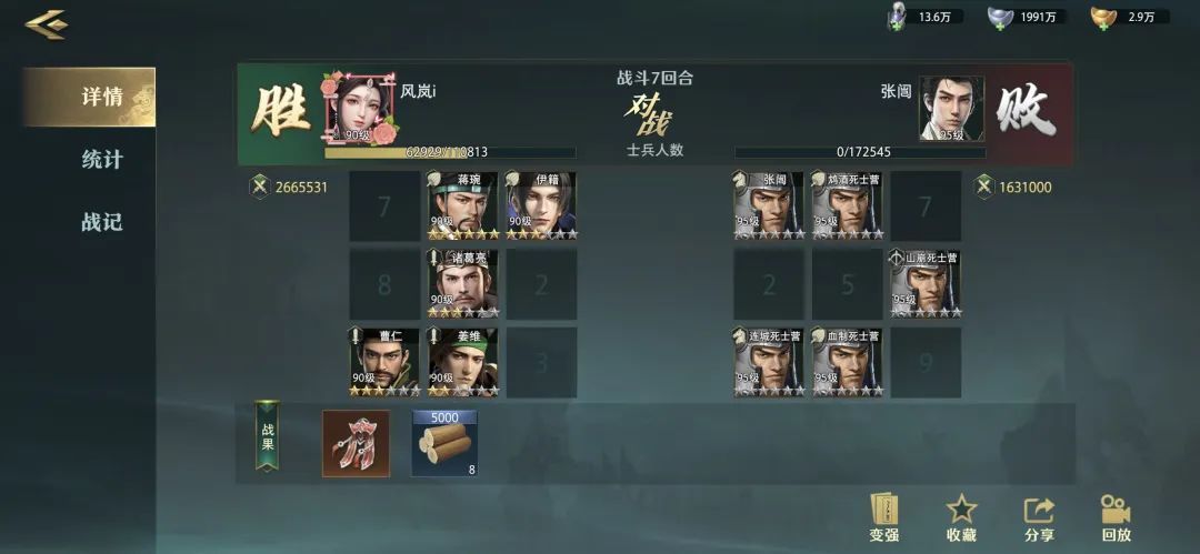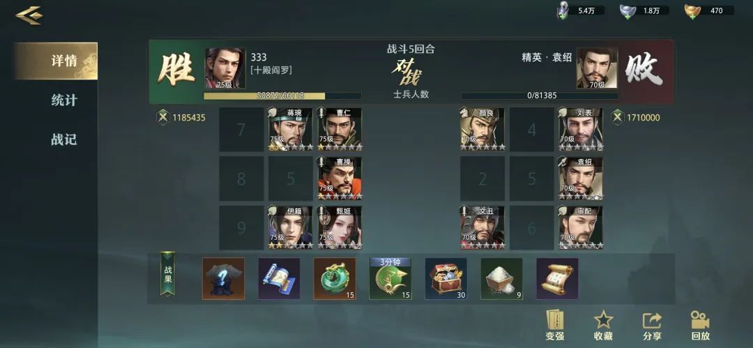 伊籍 蒋琬 诸葛亮 姜维 曹仁战报分析强如战役副本当前最难卡点——张闿,也被四蜀曹仁的阵容无情倾轧。第一回合首发技能的好处毋庸置疑。顶住npc的普攻,就没有虎啸过不去的坎~ 阵容解析 进阶版虎啸流、第一回合技能首发、战役or精英一阵碾压。