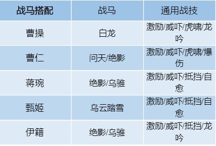 控士气战马以及战马技能战马白龙专属武将:曹操