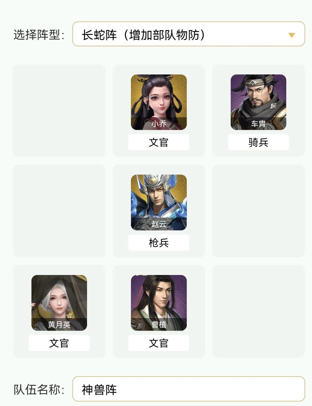 阵容要求:针对阵型,包括但不限于长蛇阵,顶住神兽的普攻压力,车胄无需培养,1级上阵即可。队伍满足开场激励15士气,需配合快航。